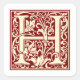 William Morris Letter H Monogram Initial Red Square Sticker
