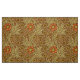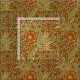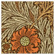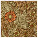 Fabric in a vintage William Morris, Art Nouveau, marigold damask print of leaves and flowers, digitally enhanced and colored, in shades of copper brown and mustard gold, accented with orange and yellow, on a dark chocolate brown background