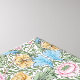 Myrtle is at once elegant and cheerful, featuring a profusion of flowers favored by the upper classes of the 19th century for the formal garden and conservatory. Glistening white myrtle and full-blown pink damask roses, both prized for their heady perfume combine with tawny gold dahlias and acanthus of sage green and a lovely shade of clear blue. Dark green sprays of myrtle leaves in the background add a sense of depth.