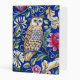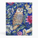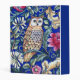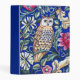 Mini Binder in a William Morris Art Nouveau, tapestry pattern, featuring a tan and beige owl against fantasy flowers and leaves, with a deep cobalt blue background and border