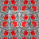Fabric in a vintage William Morris textile pattern of stylized pimpernel flowers and leaves - flowers in a gradient of dark to bright red, with graphite gray / grey leaves, on a light silver gray background