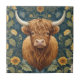 William Morris style Highland Cow Yellow Sunflower Ceramic Tile
