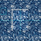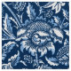 Fabric in a vintage William Morris, Art Nouveau, floral print of stylized sunflowers, digitally enhanced and colored, in dark navy / indigo blue and white, accented with light denim blue