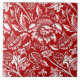 Ceramic tile in a vintage William Morris, Art Nouveau, floral print of stylized sunflowers, digitally enhanced and colored, in deep Chinese red and white, accented with light coral