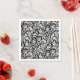 Paper napkins in a vintage William Morris damask pattern of thistle flowers and leaves, in white, on a black background, digitally enhanced and colored