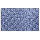 Fabric in a vintage William Morris damask pattern of thistle flowers and leaves, in deep cobalt blue, on a white background, digitally enhanced and colored