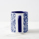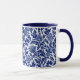 Coffee mug in a vintage William Morris damask pattern of thistle flowers and leaves, in deep cobalt blue, on a white background, digitally enhanced and colored