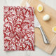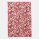 Kitchen towel in a vintage William Morris damask pattern of thistle flowers and leaves, in white, on a dark Chinese red background, digitally enhanced and colored