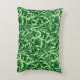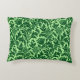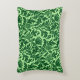 Accent pillow in a vintage William Morris damask pattern of thistle flowers and leaves, in deep emerald green, on a light mint green background, digitally enhanced and colored