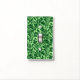 Light switch cover in a vintage William Morris damask pattern of thistle flowers and leaves, in deep emerald green, on a light mint green background, digitally enhanced and colored
