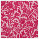 Fabric in a vintage William Morris damask pattern of thistle flowers and leaves, in deep fuchsia pink, on a pastel pink background, digitally enhanced and colored