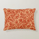 Accent pillow in a vintage William Morris damask pattern of thistle flowers and leaves, in deep mandarin orange, on a pastel orange background, digitally enhanced and colored