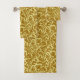 Towel set in a vintage William Morris damask pattern of thistle flowers and leaves, in deep mustard gold, on a light chamois yellow background, digitally enhanced and colored