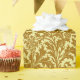 Wrapping paper in a vintage William Morris damask pattern of thistle flowers and leaves, in deep mustard gold, on a light chamois yellow background, digitally enhanced and colored