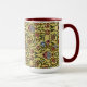William Morris Vintage Floral Flowers Green Blue Mug - The image decorating this product is a beautiful wallpaper design created in 1884 by 19th century artist and designer William Morris (1834-1896). The design features a formal pattern of stems of green foliage and vases containing plants with red and blue flowers on pale ground, suggestive of wood grain.
