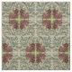 This is a digitally enhanced print of a ca. 1900 embroidered cotton square intended as a cushion cover, with a vertically and horizontally mirrored pattern of a rose-colored flower with grass-green leaves, surrounded by pale blue acanthus leaves, after a design by William Morris. William Morris was a Victorian era poet, novelist, textile designer and an important figure of the British Arts and Crafts Movement. His designs had a medieval-inspired aesthetic and respect for hand-craftsmanship and traditional textile arts. He was the founding figure of Morris & Co., and Kelmscott Press. He was friends to many Pre-Raphaelite artists such as Edward Burne-Jones and Dante Gabriel Rossetti.