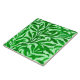 Ceramic tile in a vintage William Morris pattern of stylized willow branches, in medium to dark emerald green, on a pale mint green background