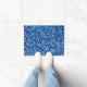 Doormat in a William Morris Art Nouveau textile pattern of stylized willow branches and leaves in shades of light sky blue, accented with white, on a dark cobalt / navy blue background