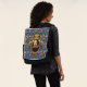 The Bard - The original artwork by ZoeSPEAK on this Backpack features a portrait of the author William Shakespeare. The portrait is in an ornate oval gold frame with ribbons and a crown on top. The blue background wallpaper is decorated with castles, kings' crowns and yellow and red flowers, bringing to mind the romance, tragedy and comedy of his plays and poetry.