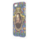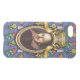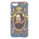 The Bard - The original artwork by ZoeSPEAK on this iPhone SE/8/7 Case features a portrait of the author William Shakespeare. The portrait is in an ornate oval gold frame with ribbons and a crown on top. The blue background wallpaper is decorated with castles, kings' crowns and yellow and red flowers, bringing to mind the romance, tragedy and comedy of his plays and poetry.