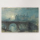 Alnwick Castle . Joseph Mallord William Turner (1775 – 1851). Cute night landscape in dark blue tones. In the foreground is a group of deer. In the middle there is a bridge over the river. The moon is in the sunset sky. Reproduction of famous works of art images in the public domain.