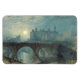 Alnwick Castle . Joseph Mallord William Turner (1775 – 1851). Cute night landscape in dark blue tones. In the foreground is a group of deer. In the middle there is a bridge over the river. The moon is in the sunset sky. Reproduction of famous works of art images in the public domain.