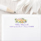 These return address labels feature a colorful watercolor floral image, using colors of tangerine, gold, yellow, blue, violet, green, and more. Your custom text is in purple blue at the lower center. The images and text are placed on a white background. If you need to change the color, size, location, or font of the text, choose Customize. These labels match our Willow and Floral Wedding line.