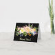 Dramatic black gives a new attitude to the standard thank you card! This pretty lemon yellow, tangerine gold, and green floral arrangement has dashes of color added, including red, violet, and blue. It looks stunning on a black background. Light gold script text at the bottom says Thank You! The inside of this card is left blank for your own personal message.