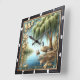 Introducing a stunning clock that beautifully combines nature and artistry, featuring a serene image of a goose gracefully standing beside a willow tree. This unique timepiece is not just a functional item; it serves as a captivating piece of decor that adds a touch of rustic charm to any space. The clock is designed to simulate the look of carved wood, providing an organic feel without the environmental impact of real materials.