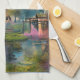 Willow tree at sunset by the pond kitchen towel