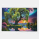 Willow tree under a Full Moon and a colorful Starry sky at Sunset