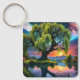 Willow tree under a Full Moon N Starry sky Sunset Keychain