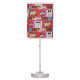 I have purchased other similar lamps. I use them as extra light for guest's. They are inexpensive, easy to assemble and good height for reading. I like that there are many pre-made shades to choose from and that, like this one, you can use your own art.