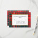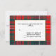 Lovely traditional tartan plaid wedding response RSVP card featuring the red, green, blue and white modern Wilson pattern, in the background. A gold edged white text area has custom text ready to personalize.