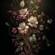 This artwork features an ethereal bouquet of wildflowers and delicate blooms, woven together in a graceful, flowing composition against a dark, moody background. The pale golden petals contrast beautifully with the deep green and russet foliage, creating a sense of vintage elegance and gothic romance. Twisting vines and tendrils add movement, giving the piece a dreamy, almost enchanted feels like a forgotten botanical illustration from a lost era. The overall effect is both soft and mysterious, perfect for adding an old-world charm to any artistic project.