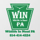 Wildlife In Need PA partially transparent window decal with logo, our full name and phone number.