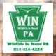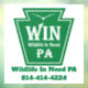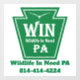 Wildlife In Need PA window decal with logo, our full name and phone number on a white background.