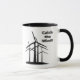 Catch The Wind! - windblown black lettering with a cluster of modern wind turbines. Choice of ceramic mug or travel mug styles.