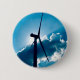 Wind turbine in the back light of the sun with blue sky and clouds.