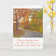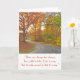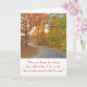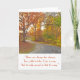 Greeting card features photo of a winding path through a woods with Fall color. The text reads, "There are always two choices. Two paths to take. One is easy. And the only reward is that it's easy." This text is customizable, so could be replaced with a message of your own. Card inside is blank. A good card to send to those who are facing decisions/choices.