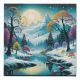 This beautiful illustration captures the peaceful serenity of a winter landscape. With snow-capped mountains and colorful trees, this design is perfect for anyone who loves the great outdoors.