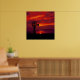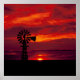 A fiery scene of a windmill back set against a beautiful sunset on this wonderful poster.