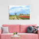Canvas landscape print with a windmill and yellow and red tulips under a cloudy sky in the Dutch countryside on a beautiful springtime day in the Bulb Region, the Netherlands. Great decoration on your wall!