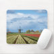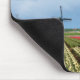 Mousepad with a landscape with a windmill and yellow and red tulips under a cloudy sky in the Dutch countryside on a beautiful springtime day in the Bulb Region, the Netherlands.