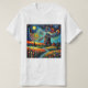 A.I. created print of a windmill stands majestically in a vibrant floral rolling landscape under a colorful energetic surreal night sky.