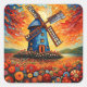 Windmill at sunset 3 square sticker