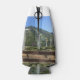 A bottle cooler featuring a photo of windmills.