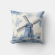 Elegant vintage windmill decorator pillow in Dutch delft blue. Contact me for assistance with customizations or to request additional matching or coordinating Zazzle products.