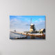 Canvas landscape print of a windmill next to a small river in the sunlight of a cold winter morning in a dutch countryside landscape with snow in the Netherlands.