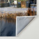 Photo wall tapestry with a windmill next to a small river in the sunlight of a cold winter morning in a dutch countryside landscape with snow in the Netherlands.